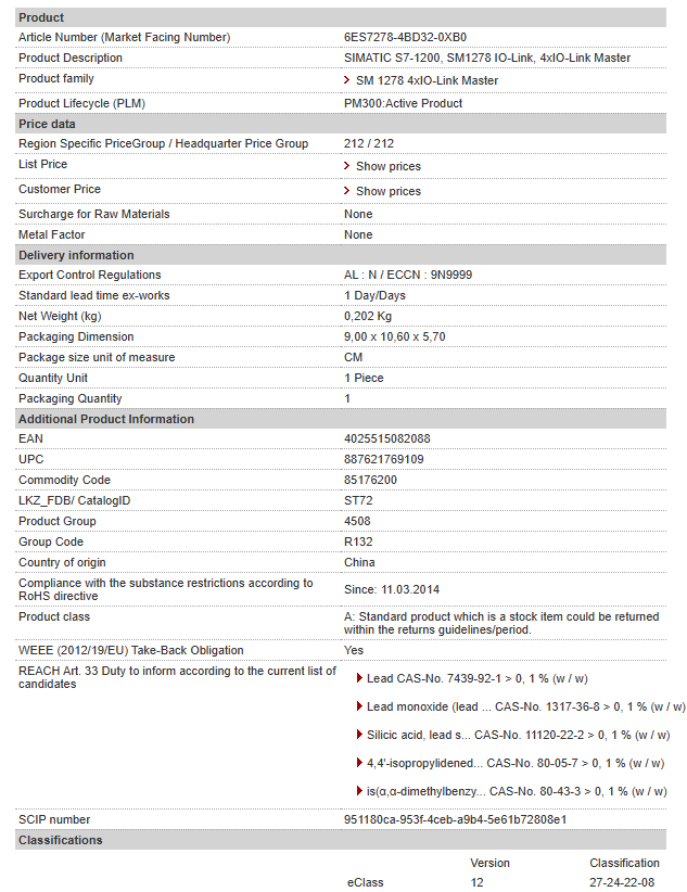 SIMATIC S7-1200, SM1278 IO-Link, 4xIO-Link Master