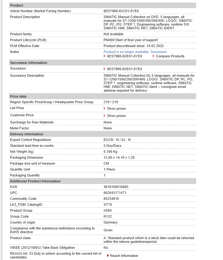 | SIMATIC Manual Collection on DVD, 5 languages, all manuals for S7-1200/1500/200/300/400, LOGO!, SIMATIC DP, PC, PG, STEP 7, Engineering software, runtime SW, SIMATIC HMI, SIMATIC NET, SIMATIC IDENT |