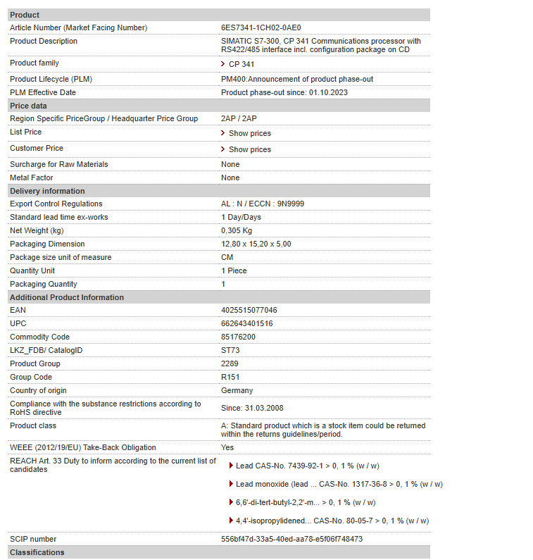 | SIMATIC S7-300, CP 341 Communications processor with RS422/485 interface incl. configuration package on CD |