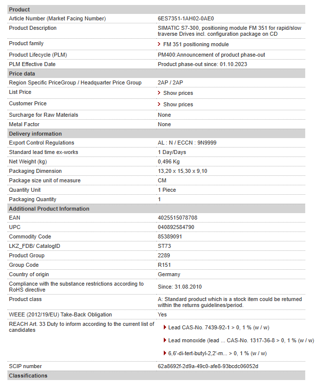 | SIMATIC S7-300, positioning module FM 351 for rapid/slow traverse Drives incl. configuration package on CD |