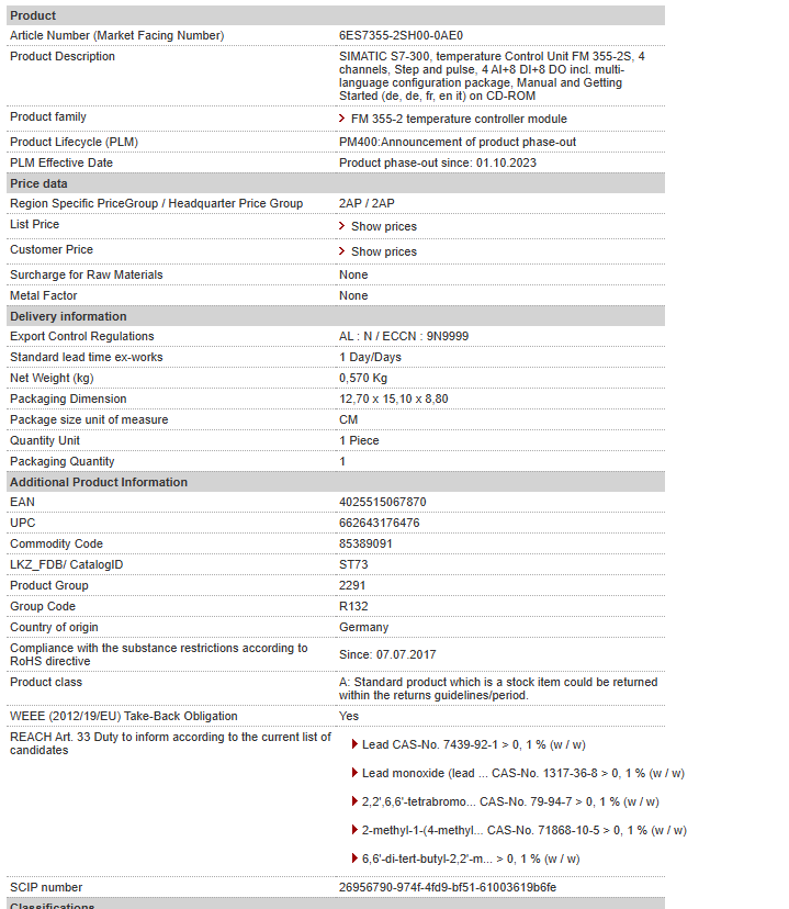SIMATIC S7-300, temperature Control Unit FM 355-2S, 4 channels, Step and pulse, 4 AI+8 DI+8 DO incl. multi-language configuration package, Manual and Getting Started (de, de, fr, en it) on CD-ROM ……